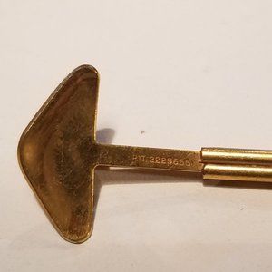Pair of Vintage mens pieces. Tie clip by Cavalier, that resembles a tractor seat. Very nice condition. The collar clip is marked Rink-Less, also goldtone. Very nice condition.