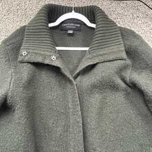 VTG Centigrade 100% Wool Sweater Coat Womens M Green Deep Pockets Snaps EUC