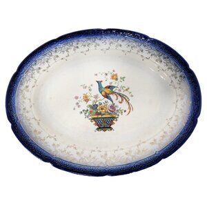 VTG Century by Salem Oval Porcelain 23 Karat Gold Peacock Serving Plate Platter