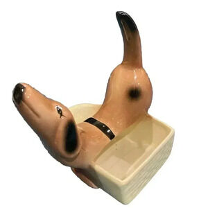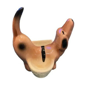 VTG Ceramic Dachshund Dresser Caddy 7" Valet Planter Dog Puppy Wallet Keys Decor