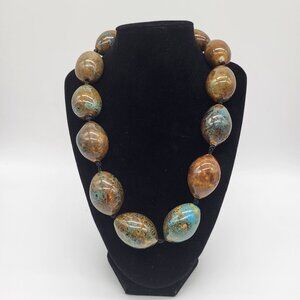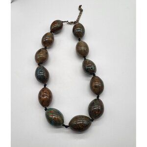 VTG Ceramic Heavy Bead Necklace Brown Turquoise Boho Statement