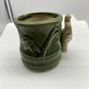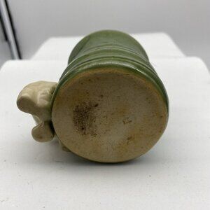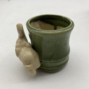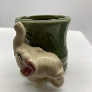 VTG Ceramic Planter Cup Vase Elephant Lucky Trunk Up Green Bamboo Asian 2 3/4”H