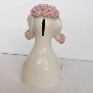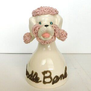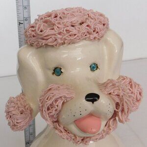 VTG Ceramic Poodle Bank with Rhinestone Eyes Spaghetti Pink Hair Signed