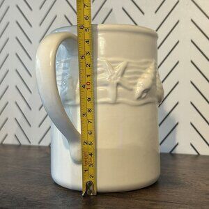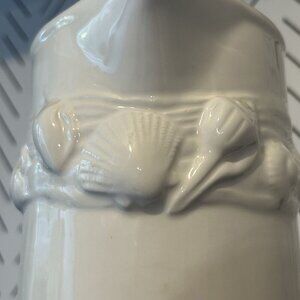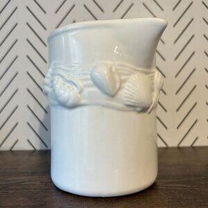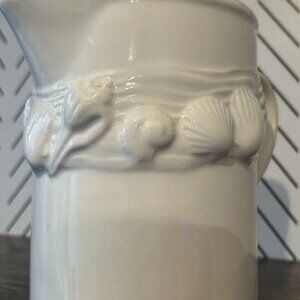 Elevate your table setting with this ceramic cream pitcher, featuring intricate seashell detailing. Ideal for serving beverages with elegance and style. Also great for beach house or seaside decor. Holds 5 cups/40 ounces.
