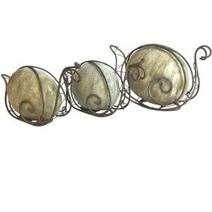VTG Ceramic Snail Scrolled Metal Art Figurine (3) Cottagecore Fairy Garden Decor