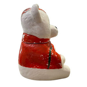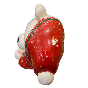 VTG Ceramic White Teddy Bear in Red Sweater Decorative Canister Jar 11.5in Tall