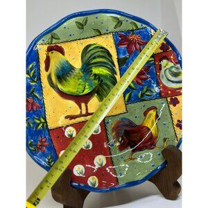 With a vibrant mosaic of roosters and florals, this hand-painted decorative plate by Certified International exudes rustic farmhouse charm. Its colorful design adds a touch of whimsy to any room.