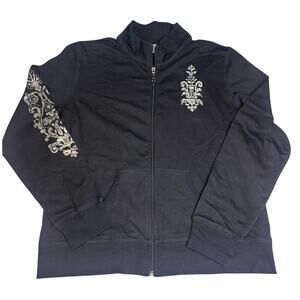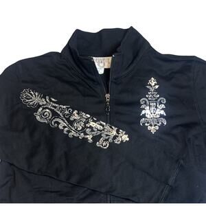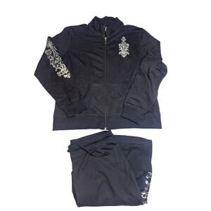 VTG Cervelle 2pc Active Pants Sweater Set Women's Sz M Black Silver Y2K USA