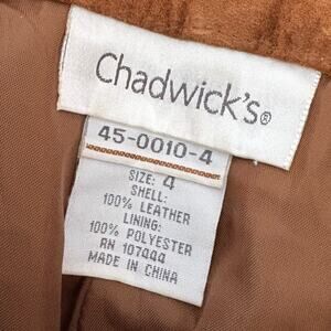 Classic Chadwick’s 100% genuine leather pants in rich brown suede. Features 5-pocket style, zip fly with button closure, and fully lined interior for comfort. Timeless straight leg cut with Western-inspired rugged appeal. Perfect for styling with cowboy boots, boho blouses, or festival looks. Professionally leather clean only.