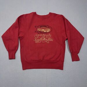 VTG Champion Reverse Weave Sweatshirt University of South Dakota Medium Red 80s