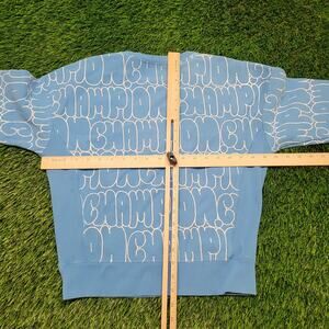 Champion Reverse Weave womens M cropped sweatshirt light blue Y2K all over print oversized boxy streetwear crewneck