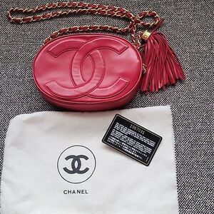 VTG Chanel Red Leather CrossBody Round Oval Mini Small Camera Tassel Bag Purse
