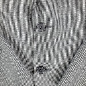 Features include a classic three-button closure, notched lapel, and flap pockets, presenting a traditional silhouette. Constructed with meticulous attention to detail, the blazer includes a fully lined interior and four-button cuffs, enhancing both comfort and style.