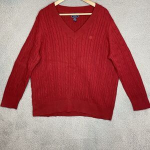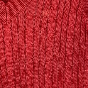 VTG Chaps Ralph Lauren Womens 3X Red Cable Knit Sweater Fisherman 100% Cotton