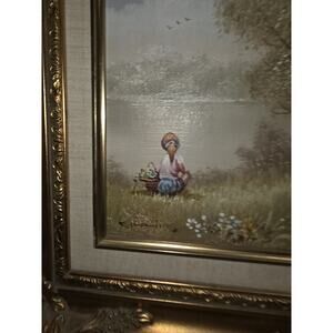 VTG Charles Manning Oil Painting On Canvas Girl By The Lake Signed 16" x 14" Professionally Framed Country Scene Nature Farmhouse Victorian Cottagecore Boho Coquette Gallery Wall French Provincial