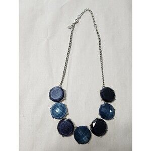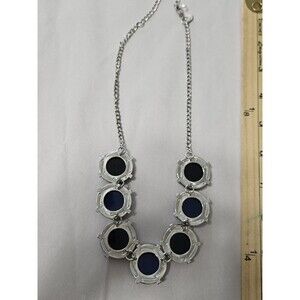 VTG Charming Charlie Designer Navy Blue Circles Rhinestones Necklace Adjustable