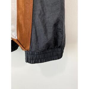 VTG Chaver Windbreaker Bomber Track Jacket Unisex Sz L 80s 90s Satin Colorblock Black Brown Retro