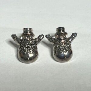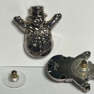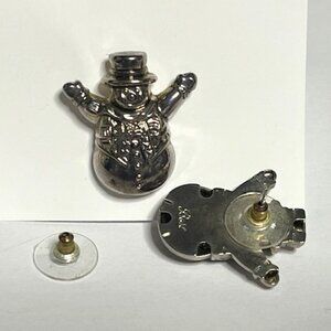 Vintage Silver Tone Winter Snowmen Pierced Earrings