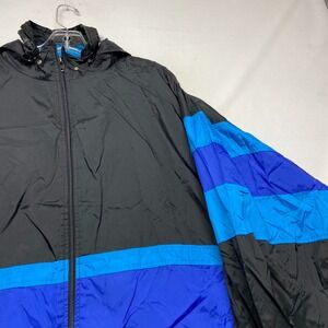 Cheetah Windbreaker Jacket Men XL Blue Black Nylon Mesh Lined Hooded Long Sleeve.