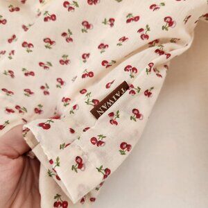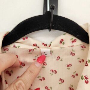 VTG Cherry Print Blouse Peter Pan Collar Long Sleeve Top Shirt Jacket Size L