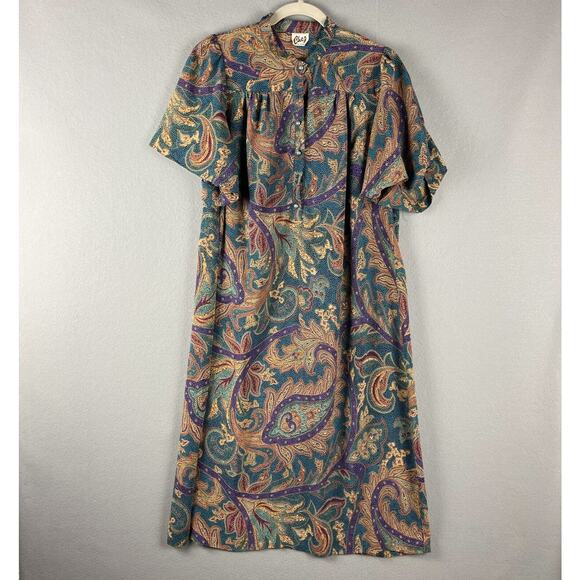 Vintage Chez California Paisley Dress Womens Large Midi Pearl Button 70s 80s