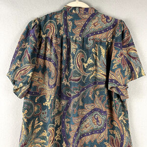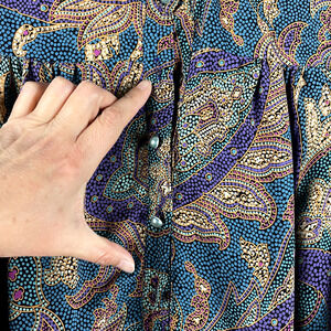 VTG Chez California Paisley Dress Women Large Jewel Tone Pearl Button 70s 80s