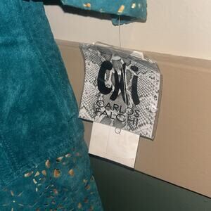 VTG Chi Carlos Falchi Suede Jacket Women’s Genuine Leather Green & Gold Size L