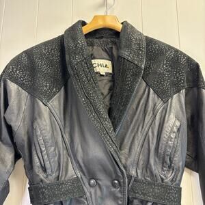 VTG Chia Women's Moto Biker Rocker Cropped Leather Jacket Size M 80s 90s Edgy