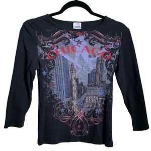 VTG Chicago Womens Shirt by Creative Apparel Concepts Size Medium Y2K Crystals