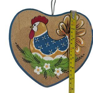 VTG Chicken Hen Cork 3 PC Different Sizing Hanging Trivets Heart Shaped Kitchen