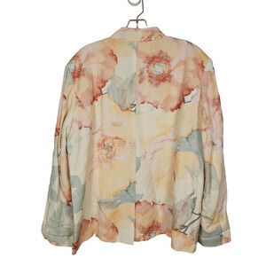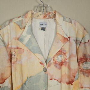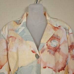 VTG Chicos 3 Linen Blend Floral Watercolor Blazer Lagenlook Pastel Art Jacket 16