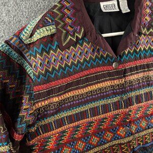 VTG Chicos Design Women Jacket Size 2 Boho Art Bohemian Colorful 90s Lightweight