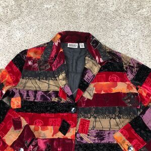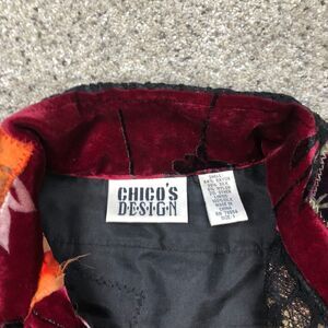 VTG Chicos Jacket Womens Medium 1 Red Silk Blend Geometric Quilted Blazer 90s