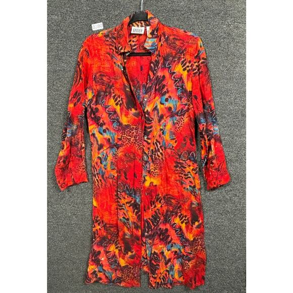 VTG Chico's Sheer Long Tunic Top Womens Size 0 US S Red Button Harvest Fall