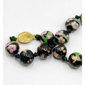 VTG Chinese Export BLACK CLOISONNÉ NECKLACE Hand Knotted Box Clasp