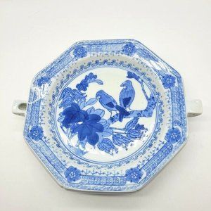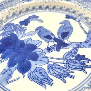 VTG Chinese Export Ware Blue Birds on Branch Warming Dish Entertaining Dinner