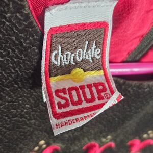 VTG Chocolate Soup Brown Crackle Velvet Jumper Dress w Flower Embroidery, sz 7