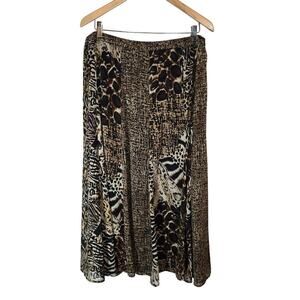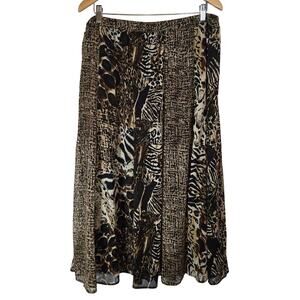 VTG Choices Mixed Animal Print Midi Skirt Elastic Waist Boho 1X Plus Lined
