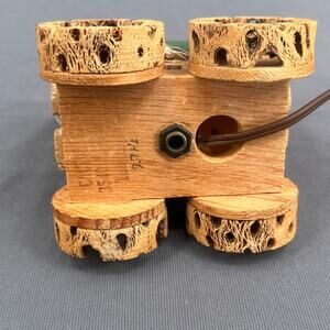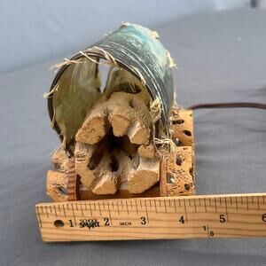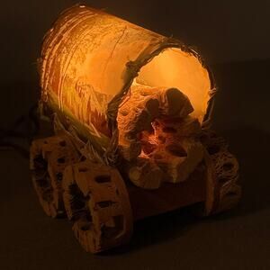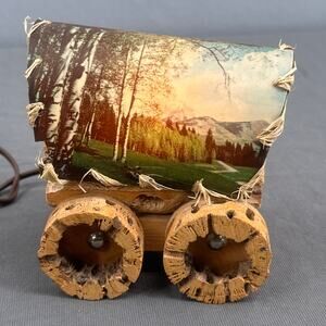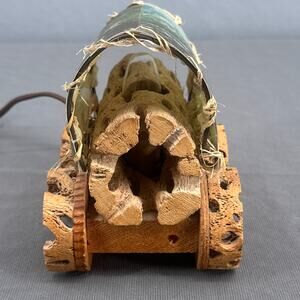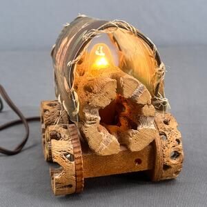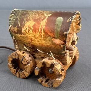 VTG Cholla Cactus Wood Covered Wagon Lamp 5" Rustic Southwest Deer Old West USA
