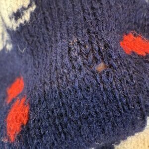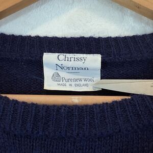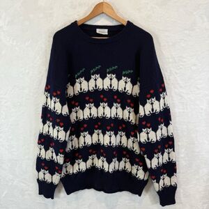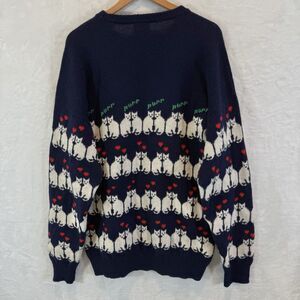 VTG Chrissy Norman Cat Sweater Wool Hearts Navy Blue Graphic 80s 90s