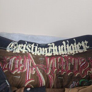 VTG Christian Audigier Men's NWT Embroidered Jeans Skull Rose Jeans Sz 42 X 34