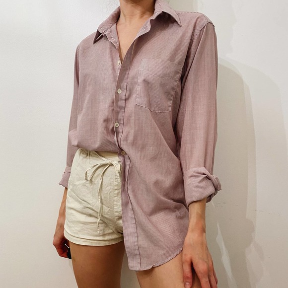 VTG Christian Dior Mauve Striped Button Down Gently worn and adored without holes or stains. Features a lightweight material, mauve toned thin stripes, and classic long sleeves with collar. Recycled style men's 15.5 - 35 Pit to pit 22.25" Length from top of shoulder 28" Arm length starting from under the armpit 21" 5494