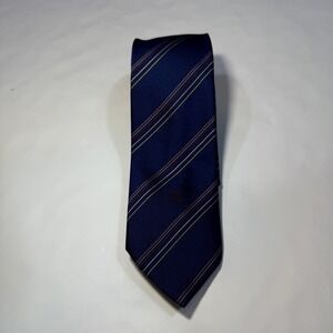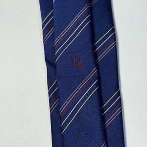 VTG Christian Dior Mens Repp Tie Silk Blend Navy Multicolor Stripes Red Logo