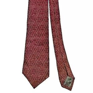VTG Christian Dior Monsieur Necktie Red Geometric Filled Diamond Pattern Silk
