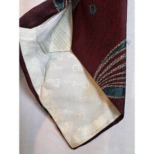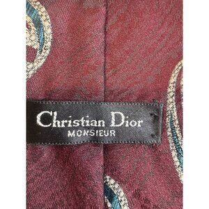 VTG Christian Dior Monsieur Tie Silk Burgundy Blue Cream Italy Made In USA 90s