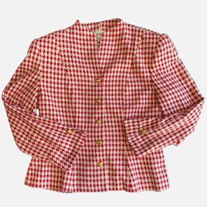 Vintage Christian Dior Red and White Houndstooth Skirt Suit (Size 12)