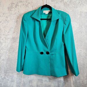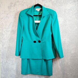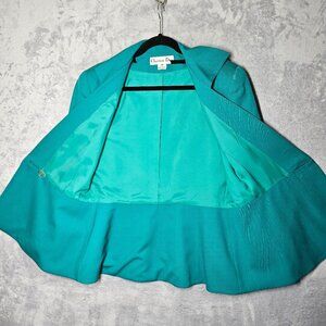 VTG Christian Dior Turquoise Blazer Skirt Suit Set Womens 10 career formal wool