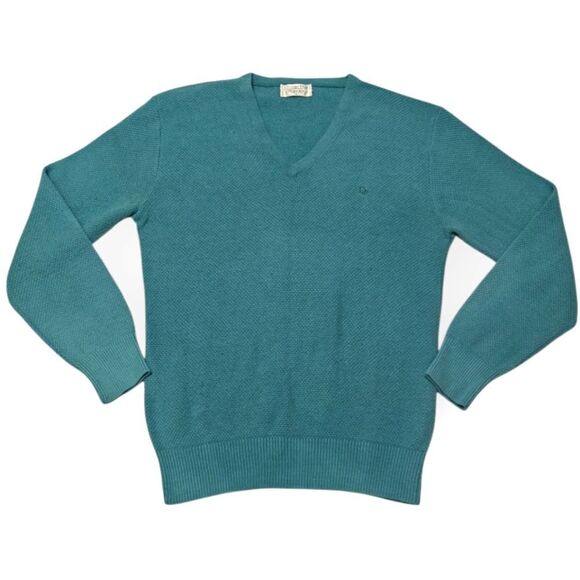 VTG Christian Dior light Blue Teal V-Neck Men's Sweater USA SZ L