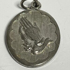 VTG Christian Praying Hands Oval Medal Pendant