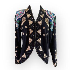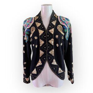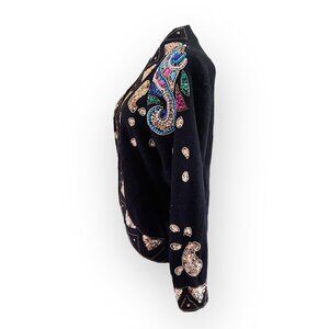 VTG Christina Silk Angora Blend Rhinestone Cardigan Sweater Small